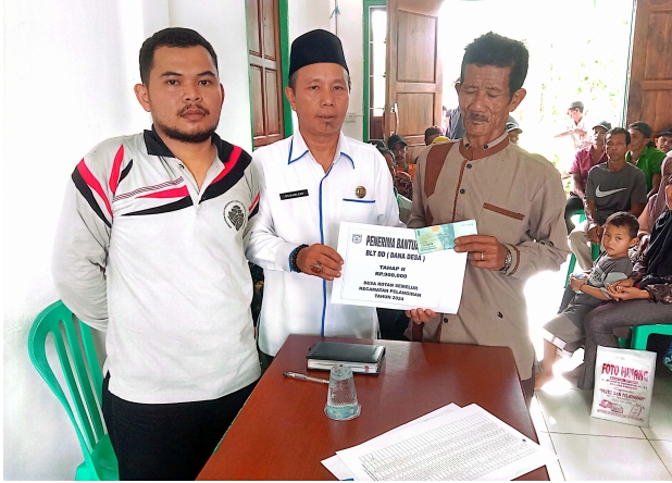 Penyaluran BLT tahap ke II dihadiri Kepala Desa, Perangkat desa dan Pendamping P3MD Kecamatan Pelangiran serta masyarakat