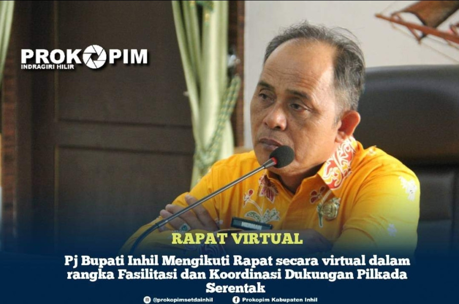 Pj Bupati Inhil Ikuti Rapat Secara Virtual dalam Rangka Fasilitasi dan Koordinasi Dukungan Pilkada Serentak