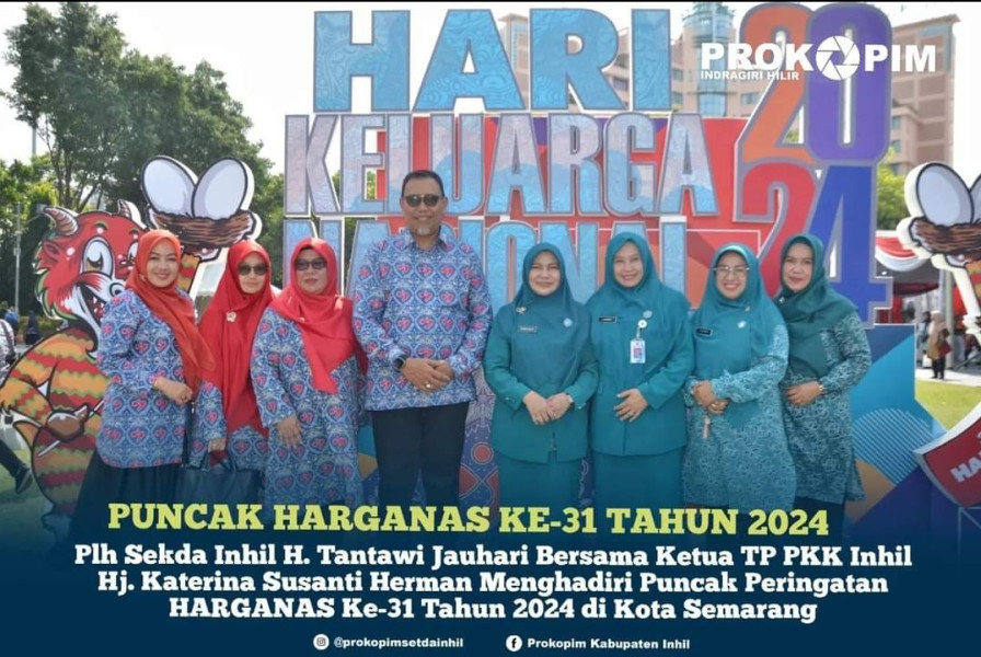 KILASRIAU.com, SEMARANG - Plh Sekda Kabupaten Inhil H. Tantawi Jauhari bersama Ketua TP PKK Inhil Hj. Katerina Susanti Herman menghadiri acara Puncak Peringatan Hari Keluarga Nasional (HARGANAS) Ke-31 Tahun 2024 yang dilaksanakan di Lapangan Pancasila, Kota Semarang, Jawa Tengah, Sabtu (29/06/2024).