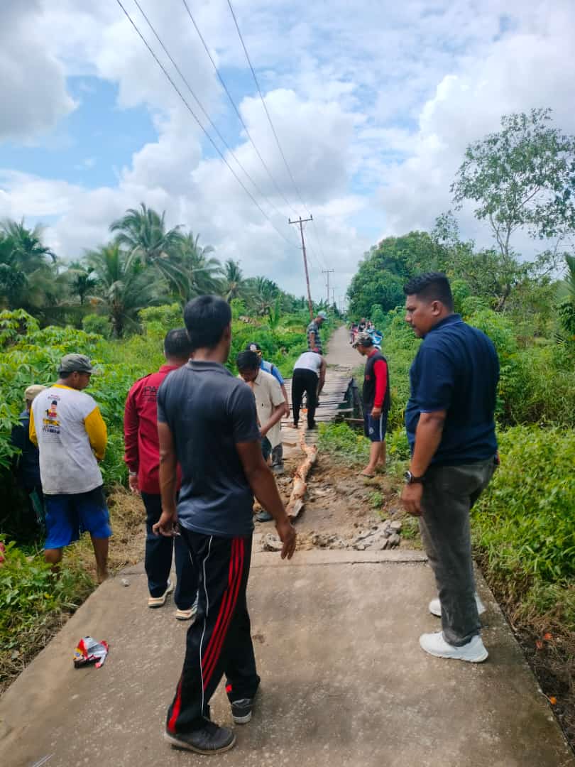 Pemdes Wonosari Lakukan Perbaikan Jembatan Kanal Rencong Perbatasan Dengan Kelurahan Pelangiran