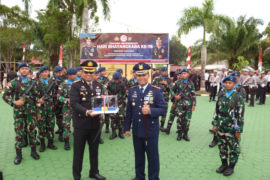 Dalam momen tersebut, Kolonel Pnb Dedy Iskandar memberikan tumpeng Dirgahayu Bhayangkara ke-78 dan miniatur pesawat Sukhoi sebagai simbol penghargaan.