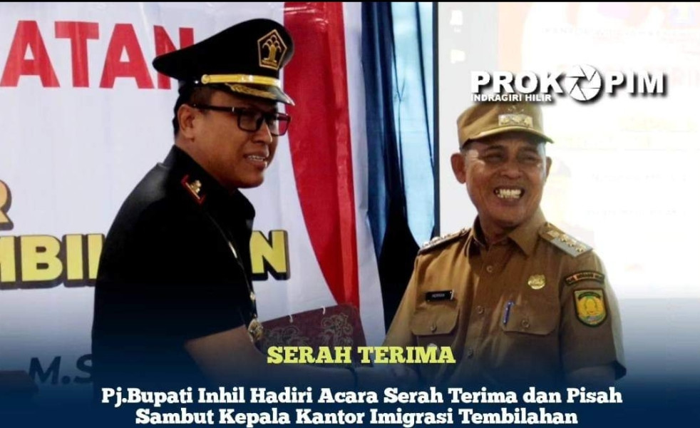KILASRIAU.com - Penjabat (Pj) Bupati Inhil H. Herman menghadiri acara serah terima dan pisah sambut kepala kantor Imigrasi kelas II TPI Tembilahan, dari Nanang Mustofa kepada Yoga Aria Prakoso, bertempat di Aula kantor Imigrasi Tembilahan, selasa (02/07/2024).