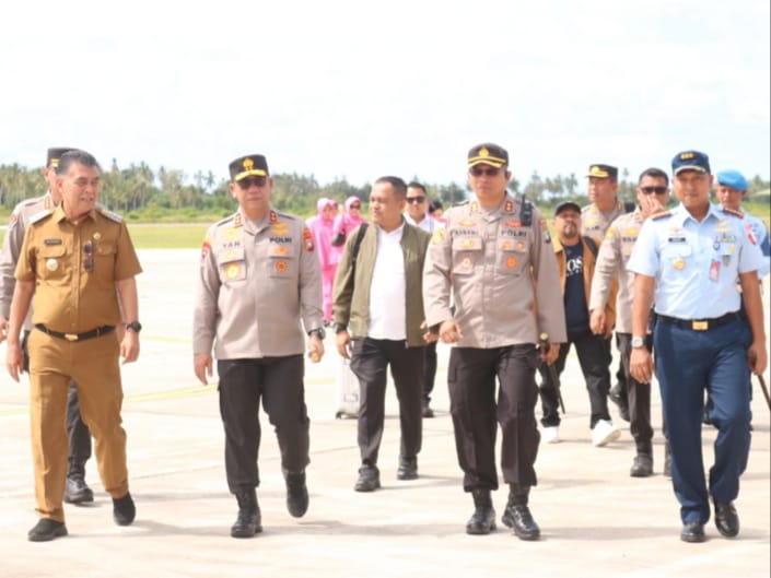 Setiba di Natuna, Bupati Wan Siswandi bersama Forkopimda sambut hangat kedatangan Kapolda Kepri, Irjen Pol Drs. Yan Fitri Halimansyah di Bandara Lanud Raden Sadjad Natuna.