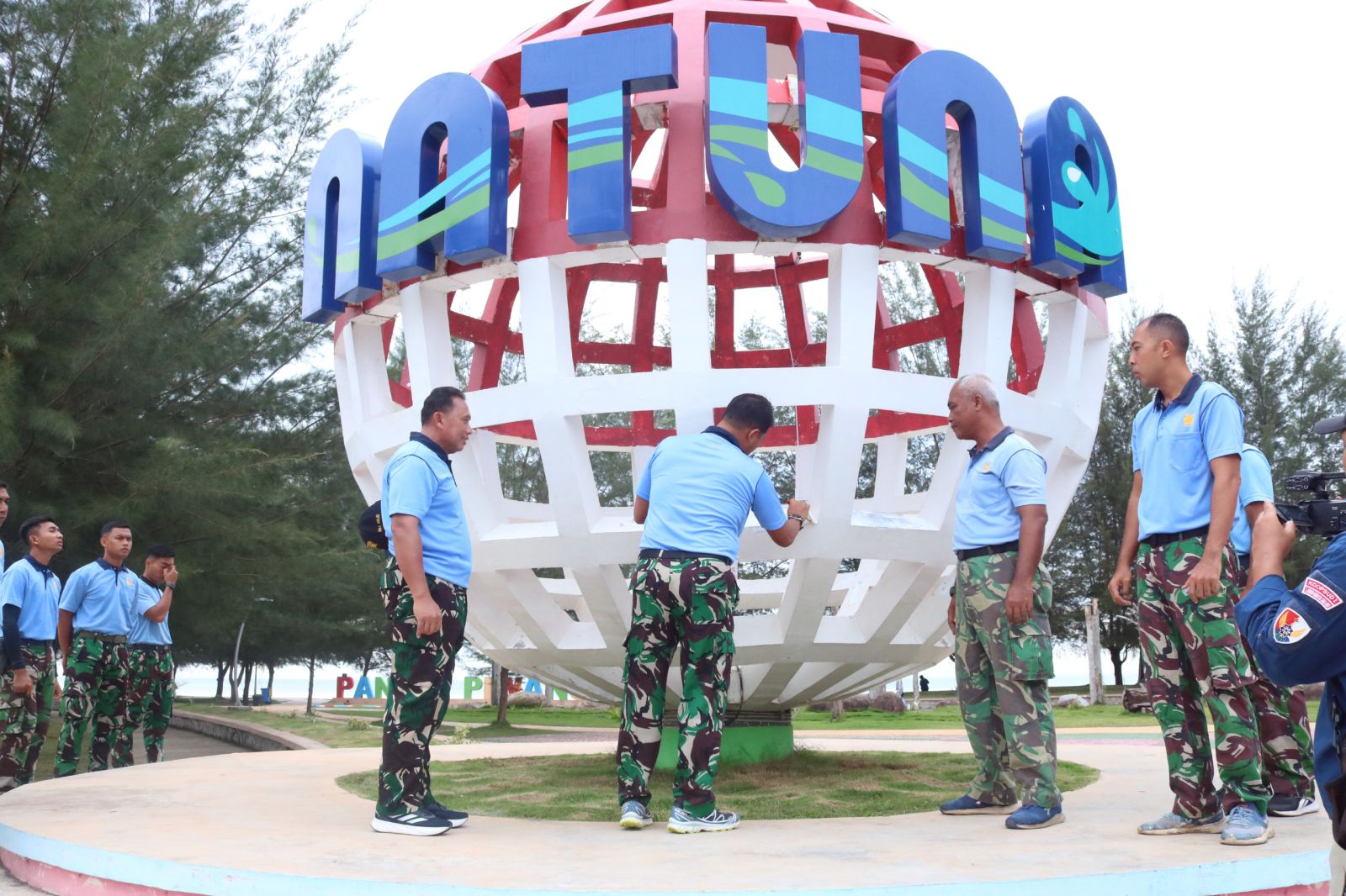 TNI AU Lanud RSA Natuna Gelar Karya Bakti Pengecatan Bola Dunia di Pantai Piwang