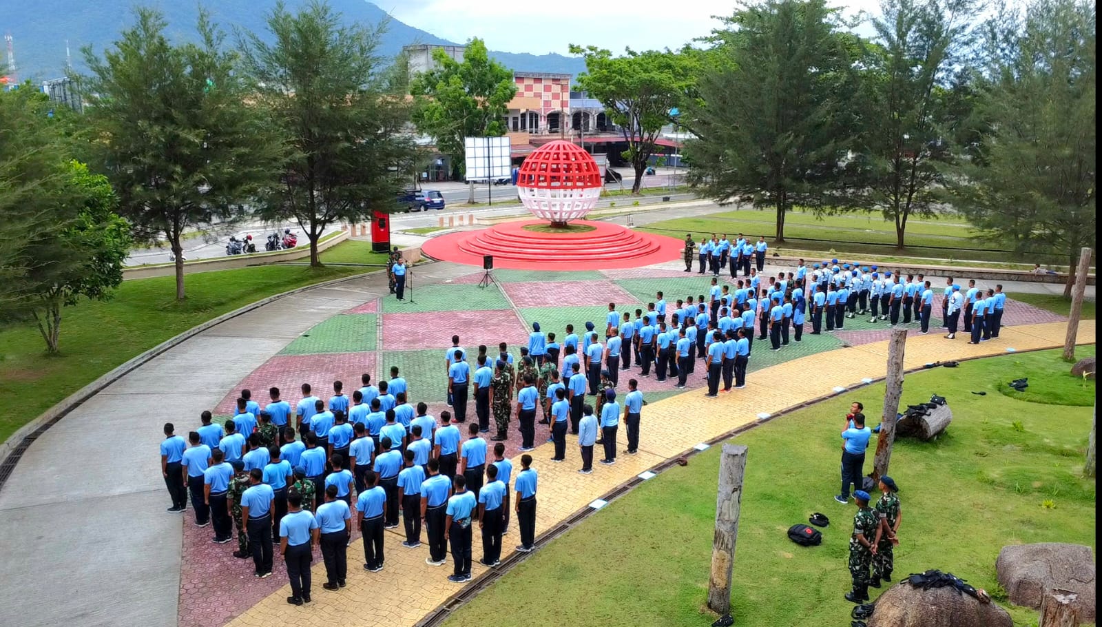 Komandan Lanud RSA Natuna, Kolonel Pnb Dedy Iskandar, S.Sos., M.M.S., M.Han., , bersama para pejabat utama Lanud RSA, turut serta dalam kegiatan ini sebagai wujud dukungan terhadap perawatan dan pelestarian Tugu Bola Dunia. Pengecatan ulang tugu dengan warna merah dan putih melambangkan semangat nasionalisme dan komitmen Lanud RSA dalam mempertahankan keindahan landmark tersebut.