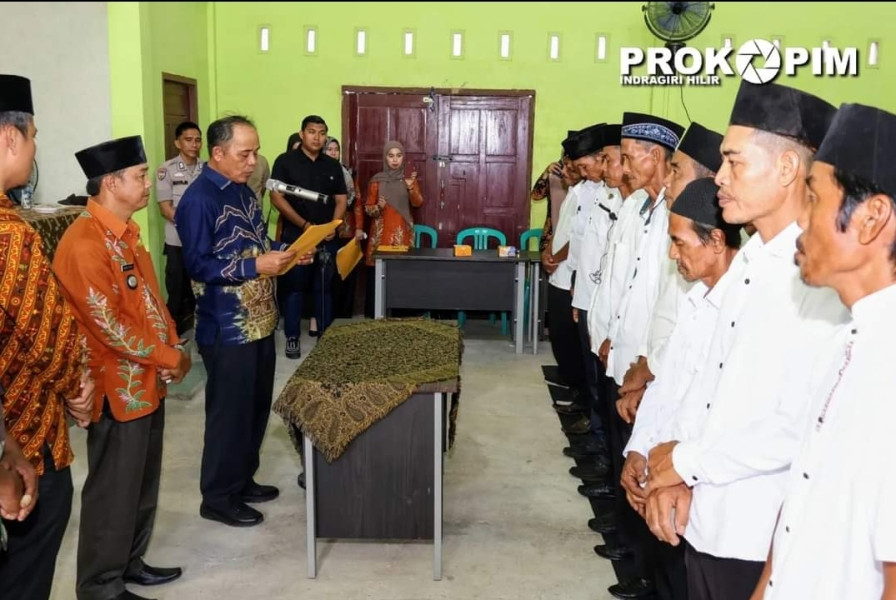 Ketua RT/RW Se- Desa Pulau Palas Tembilahan Hulu Resmi di Lantik Pj. Bupati Herman