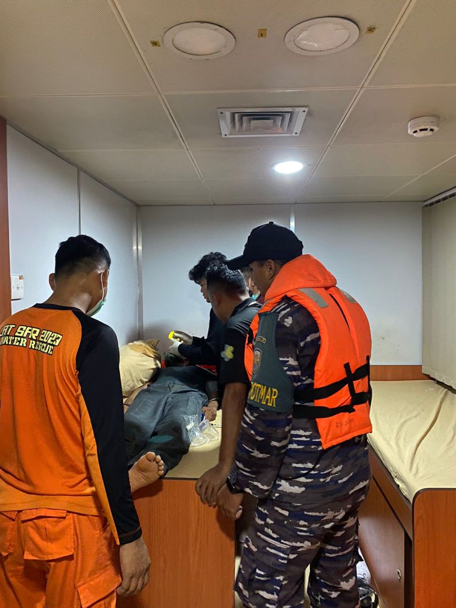 Prajurit Pos TNI AL Penagi langsung bergabung bersama Tim Evakuasi yang terdiri dari Tim Basarnas, Tim Medis, Pol Air Natuna, KKP Natuna dan Bakamla Natuna tersebut bergerak menuju titik koordinat kapal yang berada di sekitar perairan dekat Pulau Laut menggunakan KN. SAR Sasikirana.