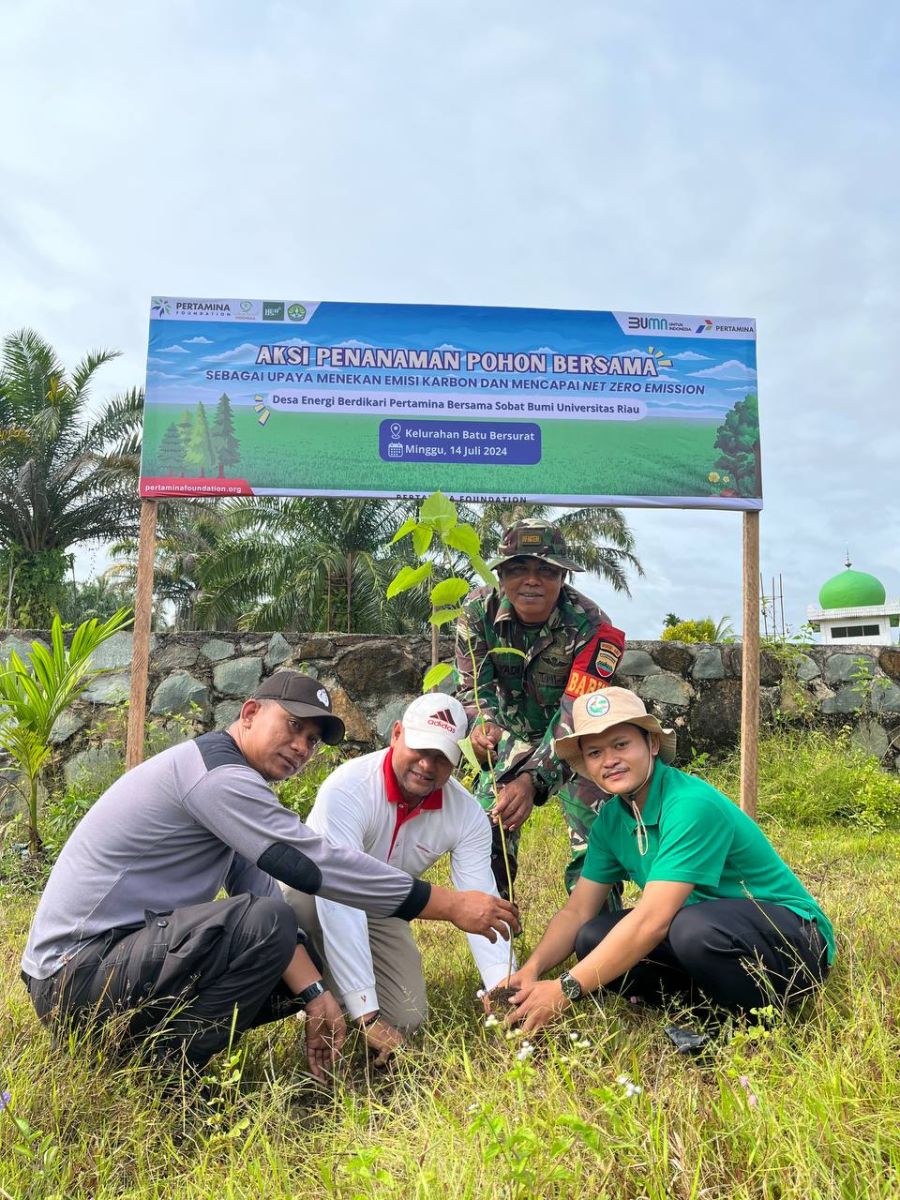 KILASRIAU.com - Dalam upaya untuk menekan emisi karbon dan mencapai target net zero emission, Tim Sobat Bumi Universitas Riau dan Pemerintah Kelurahan Batu Bersurat menggelar aksi penanaman pohon bersama pada hari minggu tanggal 14 Juli 2024.