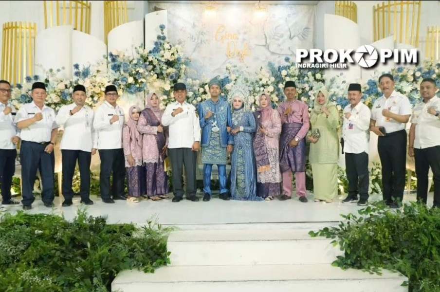 KILASRIAU.com - Pj.Bupati Inhil H.Herman, SE.MT menghadiri resepsi pernikahan Feri Gina Amelia, A.Md, Farm (Putri Kedua dari Bapak Feri Yuspi Putra (Almarhum) dan Ibu Sarina Marnita) dengan Rezki Saputra, S.Kom (Putra Kedua dari Bapak Drs.Sahuri, MM dan Ibu Dra.Jamilah S.Pd) di Gedung Telaga Puri, Rabu (17/7/2024).