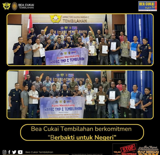 Kepala KPPBC TMP C Tembilahan, Setiawan Rosyidi, mengatakan bahwa kegiatan ini sebagai ajang silaturahmi dengan para stakeholder Bea Cukai Tembilahan dalam rangka program intimacy dengan stakeholder juga merupakan momen penandatanganan komitmen bersama untuk mendukung dan menyukseskan Program Penguatan Zona Integritas Menuju Wilayah Birokrasi Bersih dan Melayani di lingkungan Bea Cukai Tembilahan.