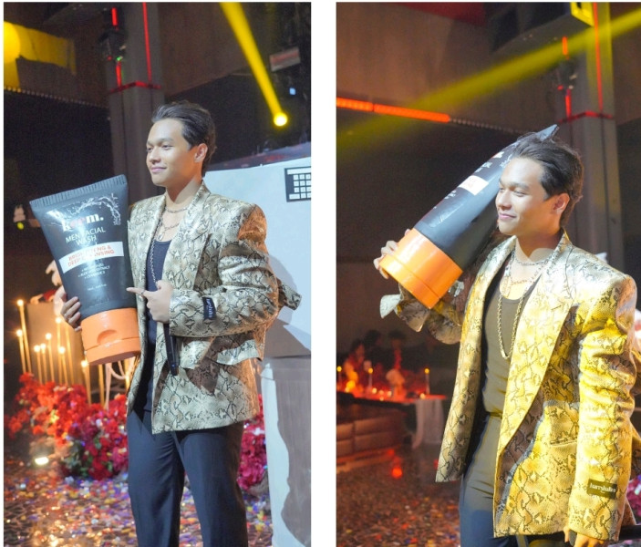"Aku selalu ngambil skincare Mama setiap habis olahraga. Akhirnya, aku berpikir untuk membuat skincare sendiri yang lebih cocok buat aku dan pria lain," ujar Hakim.