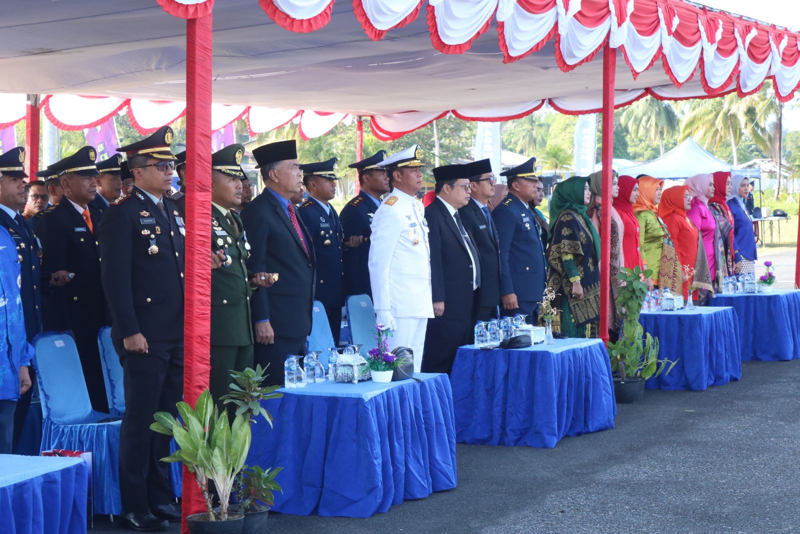 Upacara peringatan Hari Bakti ke-77 TNI Angkatan Udara, diikuti Ketua DPRD Kabupaten Natuna, Daeng Amhar, pada Senin 29 Juli 2024.