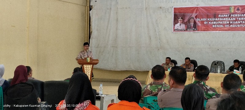 TELUK KUANTAN (KILASRIAU.Com) - Bupati Kuantan Singingi, Dr. H Suhardiman Amby, Ak.,MM diwakili Penjabat (Pj) Sekretaris Daerah (Sekda), dr. Fahdiansyah, SPoG membuka secara resmi kegiatan gladi kesiapsiagaan bencana. Di Pendopo Rumah Dinas Bupati Kuantan Singingi (Kuansing), Riau, Senin (05/08/2024).