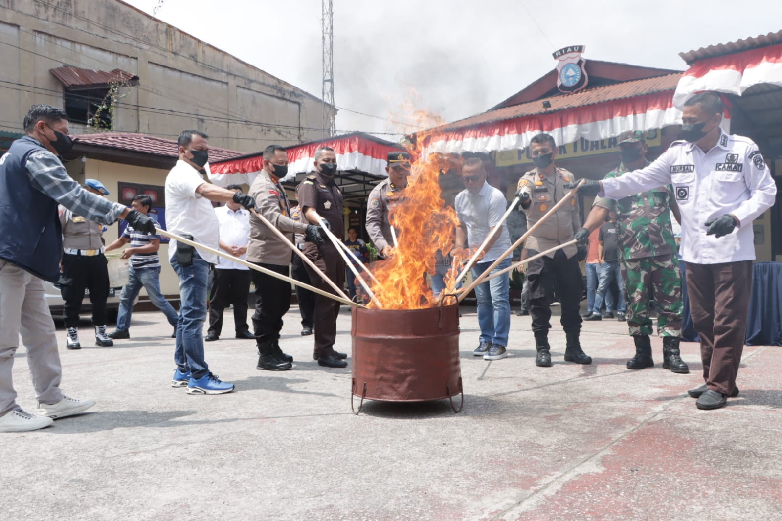 Usai gelar press release, Kapolres Siak bersama unsur terkait yang hadir memusnahkan sebagian barang bukti Narkotika daun ganja dengan cara dibakar.