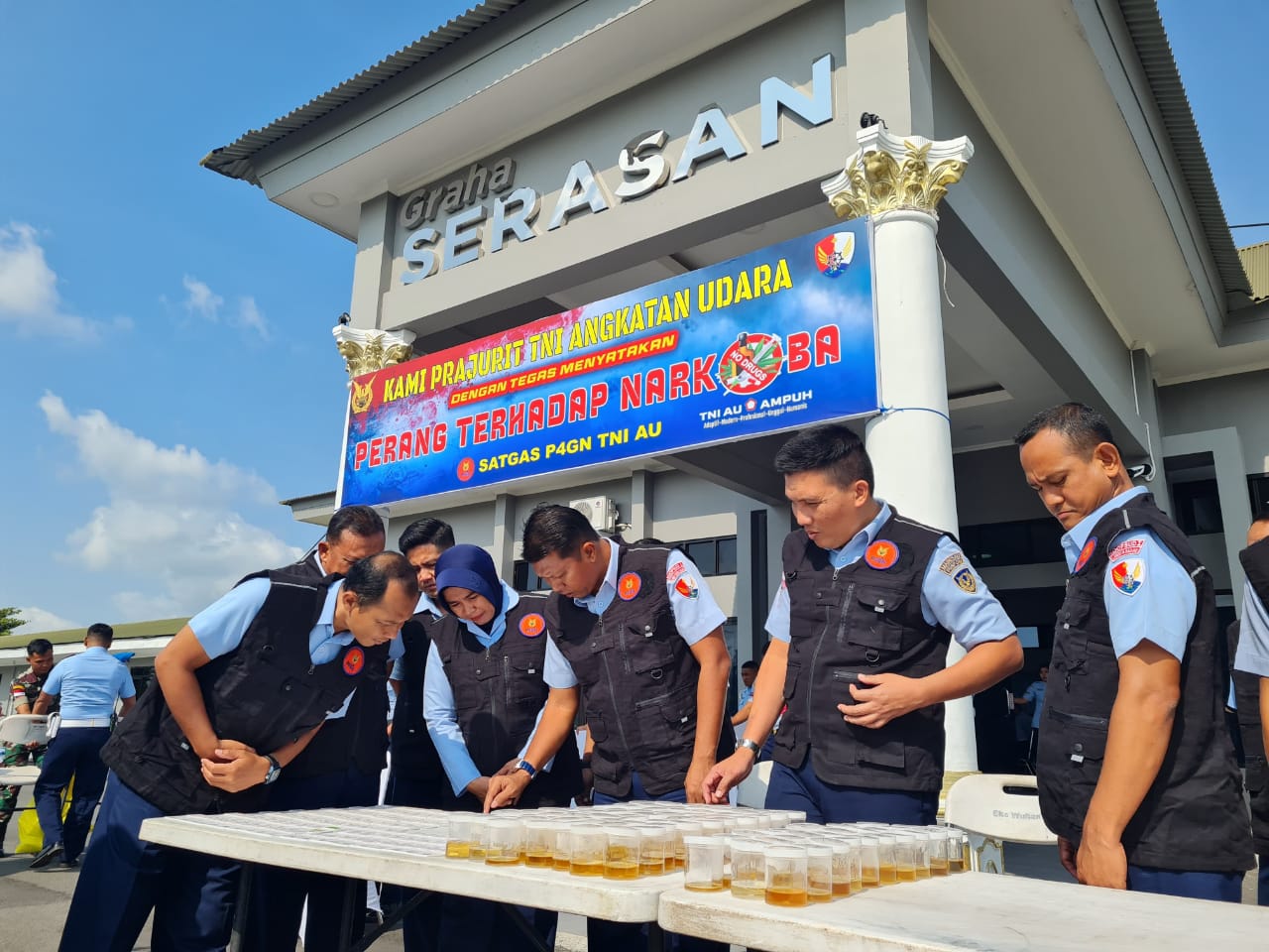 Sebelum acara sosialisasi dimulai, Komandan Lanud Raden Sadjad (Danlanud RSA) Natuna, Kolonel Pnb Dedy Iskandar, S.Sos., M.M.S., M.Han., bersama Ketua Tim Satgas P4GN TNI AU, Dirpers Puspomau, Kolonel Pom Agus Suhandi, beserta anggota tim, meninjau hasil tes urine yang dilakukan sebelumnya kepada seluruh prajurit dan PNS TNI AU di Natuna. Dari hasil pemeriksaan, seluruh personel dinyatakan negatif dari pengaruh narkotika, menunjukkan komitmen kuat dalam menjaga integritas dan profesionalisme prajurit.