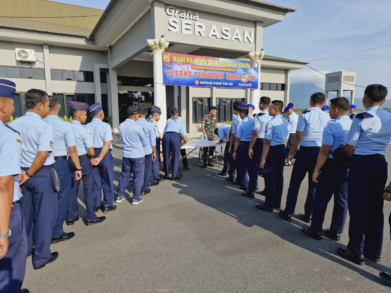 Ketua Tim Satgas P4GN, membacakan sambutan Komandan Pusat Polisi Militer Angkatan Udara (Danpuspomau), Marsma TNI Pipik Krispiarto, menyampaikan bahwa Satgas P4GN TNI AU dibentuk oleh Mabesau sebagai langkah konkret untuk memberantas penyalahgunaan narkoba di kalangan prajurit TNI AU, PNS, serta keluarga.