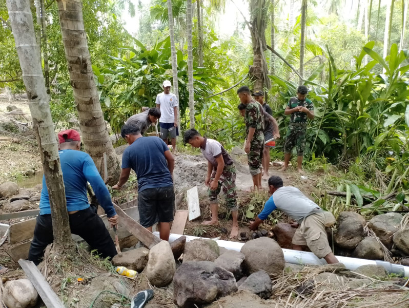 Personel Lanud RSA Natuna dan Puluhan Warga Sejuba Goro Perbaiki Pipa Air Bersih