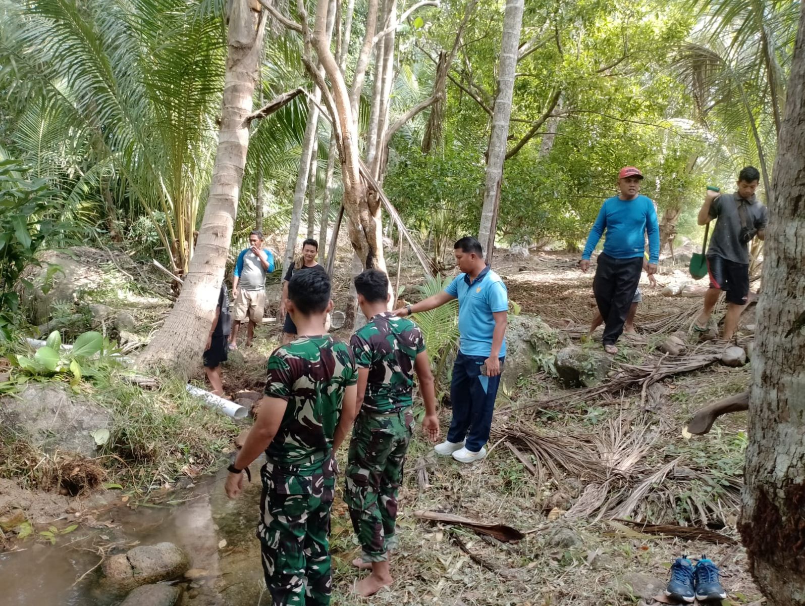 Kilasriau.com - Puluhan warga Sejuba, Desa Sepempang, Kecamatan Bunguran Timur, Kabupaten Natuna, Provinsi Kepulauan Riau bergotong royong bersama personel Lanud Raden Sadjad Natuna dalam upaya memperbaiki jalur pipa air bersih di pemukiman warga, Jumat (6/9/2024).