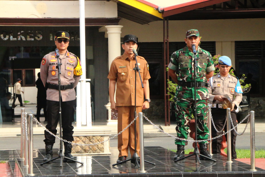 KILASRIAU.com - Tiga Pilar di Kabupaten Indragiri Hilir (Inhil) melaksanakan Apel  dalam rangka kesiapan pengamanan penetapan dan pengundian nomor urut Calon Bupati Dan Wakil Bupati tahun 2024, Jum'at (20/9), di Lapangan Polres Inhil Jl. Gajah Mada Tembilhan.