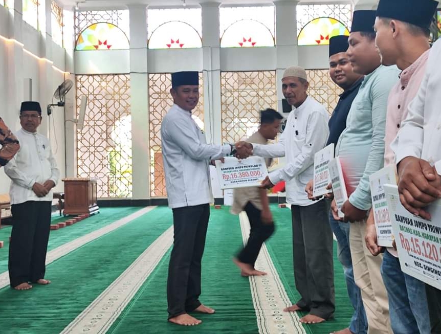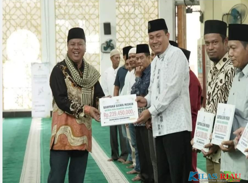 Bupati Kuantan Singingi, Dr. H. Suhardiman Amby, MM bersama pimpinan Baznas Kabupaten Kuantan Singingi, secara langsung menyerahkan bantuan kepada 6.598 mustahik yang terdiri dari siswa sekolah yang dikategorikan keluarga kurang mampu.