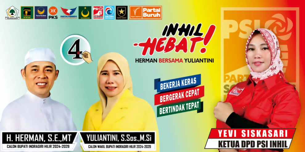- Pilkada Serentak 2024: KPU Inhil Tetapkan Herman-Yuliantini Sebagai Bupati dan Wakil Bupati Indragiri Hilir 2024 dengan Perolehan Suara 57,62%