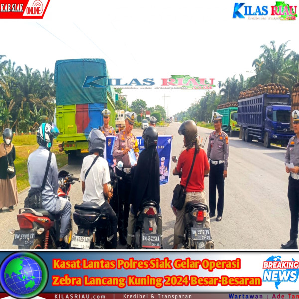 Kasat Lantas menegaskan dalan Operasi Zebra Lancang Kuning 2024 yang tinggal 2 hari lagi, Sat Lantas Polres Siak terus melakukan kegiatan preemtif, preventif dan penegakan hukum yang bertujujuan meningkatnya kesadaran masyarakat akan pentingnya keselamatan berlalu lintas, sehingga dapat mengurangi angka kecelakaan di jalan raya.