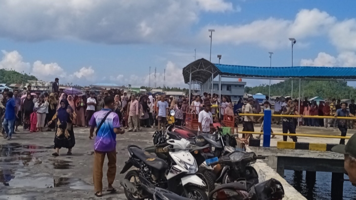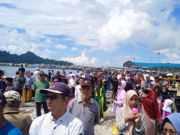Ratusan masyarakat Sedanau Natuna antusias menyambut uji coba sandar KMP Bahtera Nusantara 01 tersebut.