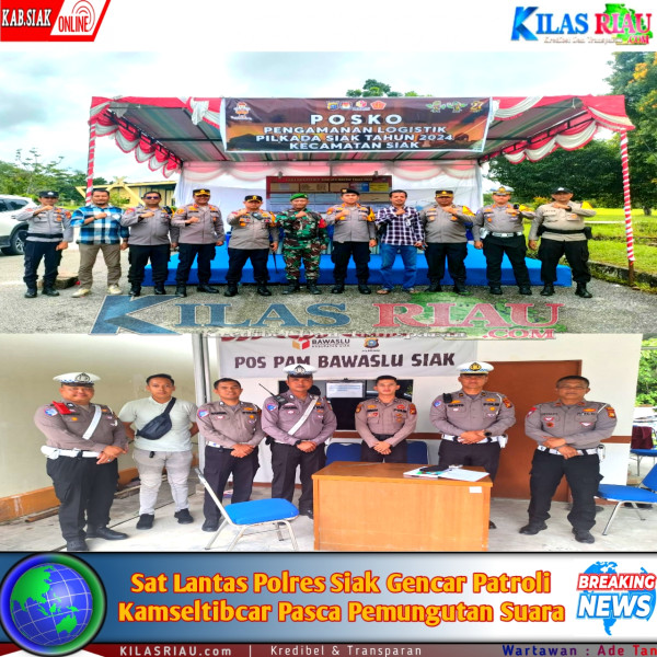 ”Kami mobile terus, memastikan seluruh lokasi kantor PPK dan tempat - tempat kerawanan lainnya aman. Pasca pemungutan suara Pilkada di Kabupaten Siak kami menciptakan kamtibmas yang kondusif dan kamseltibcar lantas dengan baik,” ujar AKP Kaliman Siregar SH MH.