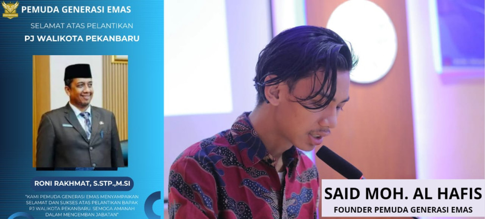 KILASRIAU.com - Founder Pemuda Generasi Emas, Said Moh. Al Hafis menyampaikan selamat atas pelantikan Bapak Roni Rakhmat Baharuddin sebagai Penjabat (Pj) Walikota Pekanbaru.