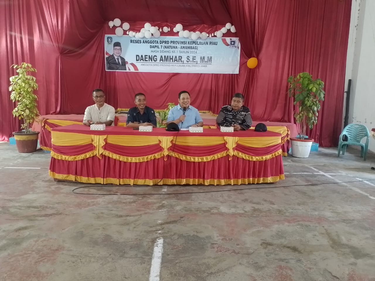 KILASRIAU.com - Daeng Amhar, anggota DPRD Provinsi Kepulauan Riau (Kepri) dapil 7 (Natuna-Anambas), menggelar reses sidang pertama di Pulau Sedanau, Natuna, pada Sabtu 7 Desember 2024 sore.