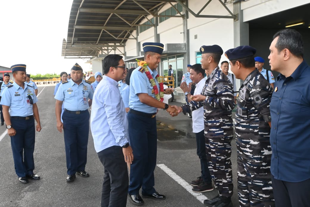 Setibanya di bandara menggunakan pesawat, Komandan beserta rombongan disambut oleh jajaran pejabat, para Kepala Dinas (Kadis), Komandan Satuan, Pamen, serta pejabat daerah Kabupaten Natuna, termasuk Sekda Natuna, Ketua DPRD, dan Forkopimda lainnya. Penyambutan dimulai dengan pengalungan bunga, pemberian hand bouquet, serta prosesi tepung tawar oleh Ketua Adat Natuna.