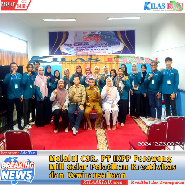 Tualang, KILASRIAU.com – Melalui Program Corporate Social Responsibility (CSR) PT Indah Kiat Pulp and Paper (IKPP) Perawang Mill gelar pelatihan kreativitas dan kewirausahaan untuk pemuda pemudi yang digelar di Rumah Pintar Abdul Wahid, Kelurahan Perawang, Kecamatan Tualang, Kabupaten Siak pada, Senin (23/12/2024).