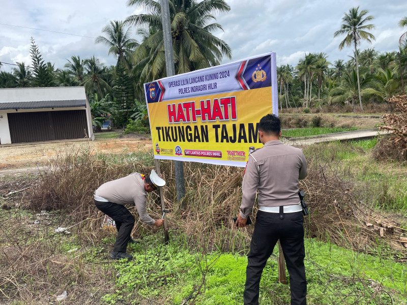 Guna memberikan pelayanan keamanan, kenyamanan dan kelancaran lalu lintas, Satlantas Polres Inhil melakukan beberapa kegiatan antisipasi lakalantas melalui pemasangan spanduk dan rambu di setiap titik rawan termasuk di sejumlah tikungan tajam. Keutamaan dalam menjaga keselamatan di jalan rayanbsudah menjadi prioritas.