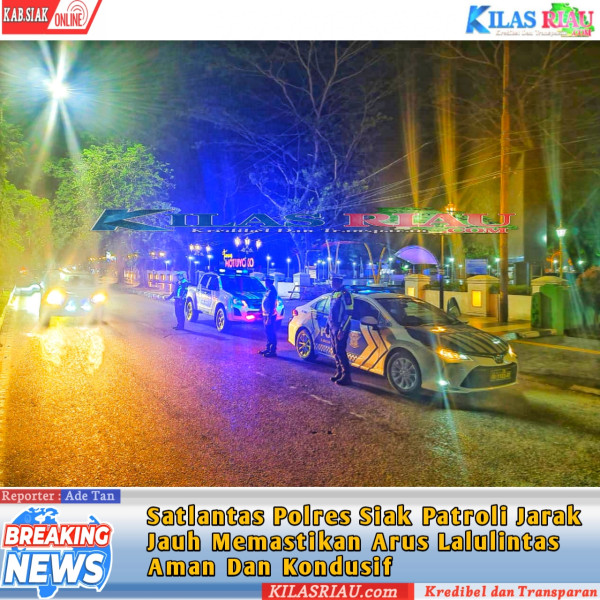 Siak, KILASRIAU.com – Satuan Lalulintas (Satlantas) Kepolisian Resort (Polres) Siak mengintensifkan patroli jarak jauh, ini dilakukan guna memastikan kondisi kelancaran arus lalulintas menyambut perayaan Natal 2024 dan Tahun Baru 2025.