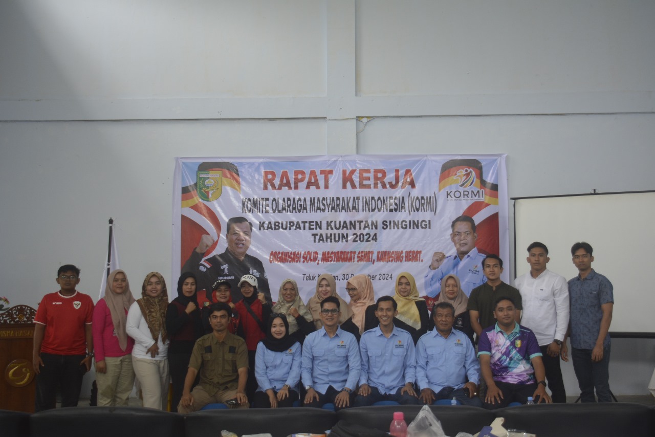 KUANTAN SINGINGI (Kilasriau.com) – Komite Olahraga Masyarakat Indonesia (KORMI) Kuantan Singingi (Kuansing) menggelar rapat kerja tahunan di wisma Hasanah Teluk Kuantan, senin (30/12/2024).