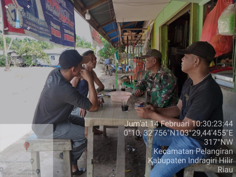 KILASRIAU.com, Pelangiran – Serma Sugianto, Babinsa Koramil 10/Pelangiran, melaksanakan kegiatan Komunikasi Sosial (Komsos) dengan warga Kelurahan Pelangiran, Kecamatan Pelangiran, Kabupaten Indragiri Hilir. Kegiatan ini bertujuan untuk mempererat hubungan antara Babinsa dengan masyarakat serta sebagai sarana silaturahmi guna mengenal lebih dekat kondisi dan perkembangan wilayah binaannya. Jum'at (14/2/2025).
