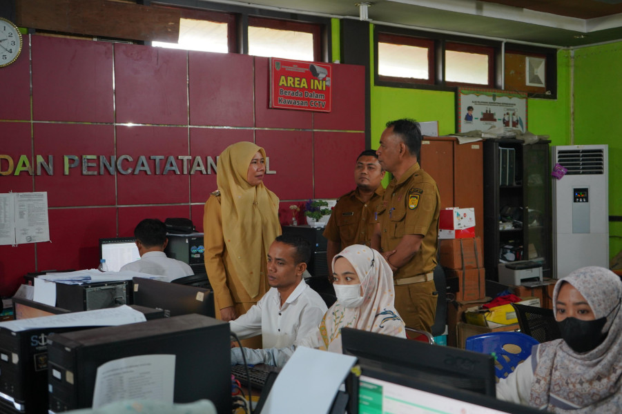 Setelah meninjau operasi pasar murah, Wakil Bupati melanjutkan sidak ke Kantor Dinas Kependudukan dan Pencatatan Sipil (Disdukcapil) Inhil untuk melihat langsung proses pelayanan administrasi kependudukan bagi masyarakat.