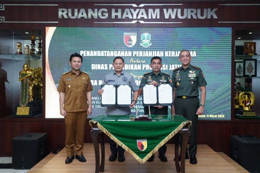 Kerjasama yang dilakukan di Ruang Hayam Wuruk Makodam V/Brawijaya, Surabaya pada Selasa (11/03/2025) itu, dilakukan antara Danrindam V/Brawijaya, Kolonel Inf Mukhamad Albar, S.E, dengan Kadindik Provinsi Jatim, Aries Agung Paewai.