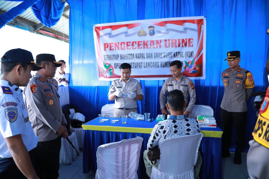 Untuk menjaga keselamatan pelayaran, Polres Inhil juga melakukan tes urine terhadap awak kapal yang akan berlayar.