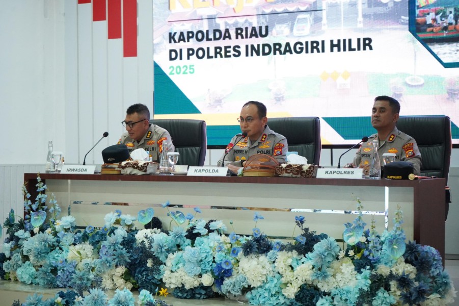 KILASRIAU.com – Kapolda Riau, Herry Heryawan, melakukan kunjungan kerja ke Mapolres Indragiri Hilir (Inhil) pada hari Senin, 14 April 2025. Dalam kunjungan tersebut, Kapolda memberikan arahan kepada seluruh personil Polres Inhil untuk meningkatkan kinerja mereka.