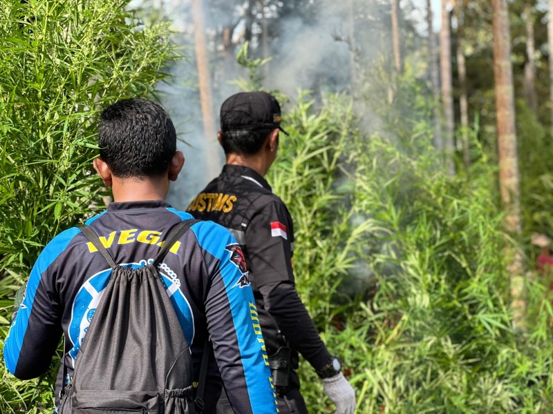 Bea Cukai Lhokseumawe Bersama Tim Gabungan Musnahkan Ribuan Batang Ganja di Aceh Utara