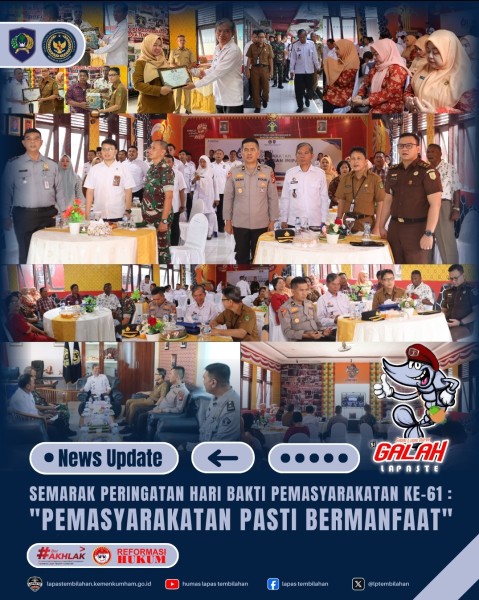 Melalui peringatan Hari Bhakti Pemasyarakatan ke-61 ini, Lapas Tembilahan terus memperkuat komitmennya untuk membangun pemasyarakatan yang lebih humanis, profesional, dan bermanfaat bagi bangsa dan negara.**