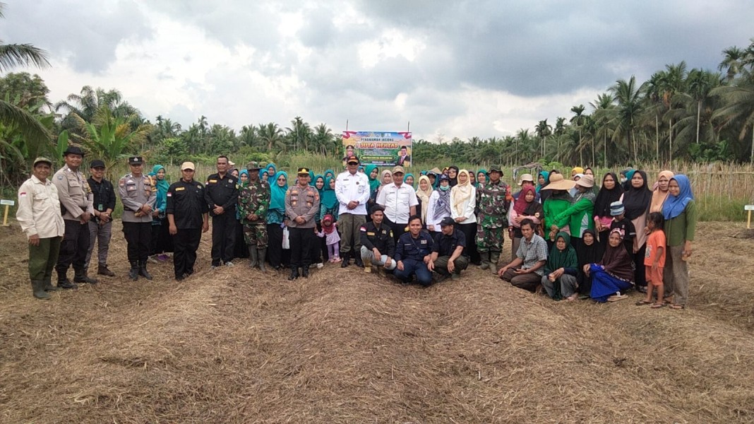 Mereka bersama-sama turun ke lahan sebagai simbol semangat gotong royong dan kekompakan dalam mendukung pembangunan desa berbasis pertanian.
