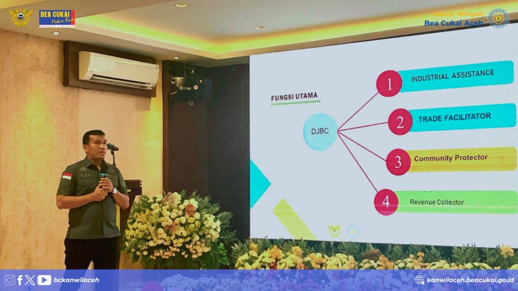 Mewakili Kanwil Bea Cukai Aceh, Kepala Seksi Penindakan II, Bapak Nazuwir, tampil sebagai pemateri.