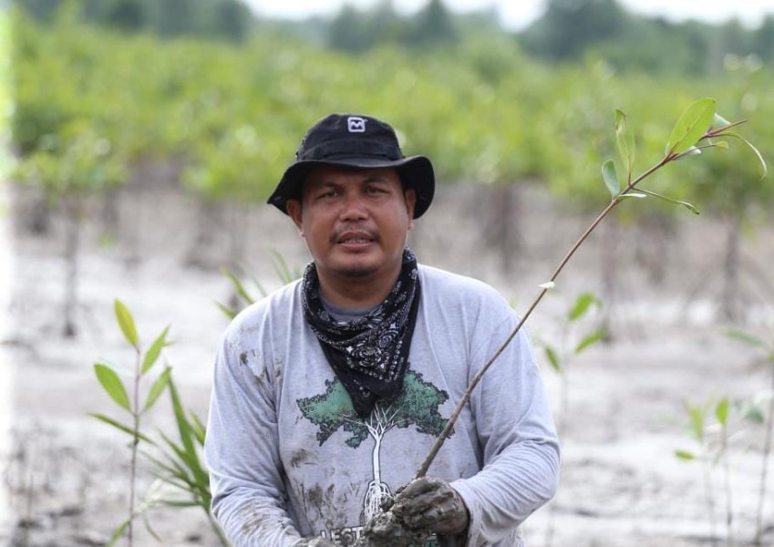 KILASRIAU.com - Di bawah matahari pagi yang menyapu, diantara lumpur pesisir yang sepi, seseorang berjalan perlahan. Ia membawa sesuatu di tangannya, bukan tongkat kekuasaan tapi bibit mangrove kecil, kurus, dan penuh harapan.