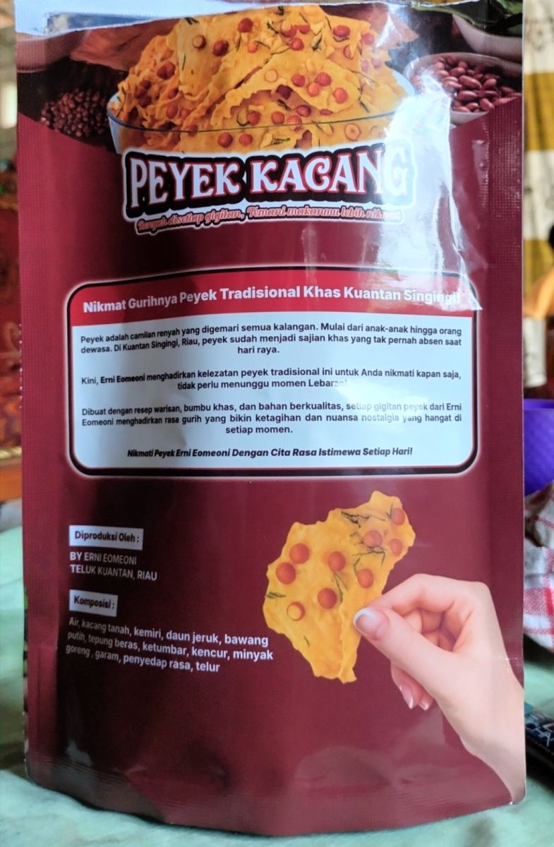 Produk ini diproduksi oleh UMKM lokal asal Teluk Kuantan dengan mengangkat resep turun-temurun khas keluarga. Bukan sekadar peyek biasa, Peyek Kacang Erni Eomeoni dikenal karena teksturnya yang tipis, rasa yang gurih alami, serta taburan kacang tanah yang melimpah di setiap lembarannya.