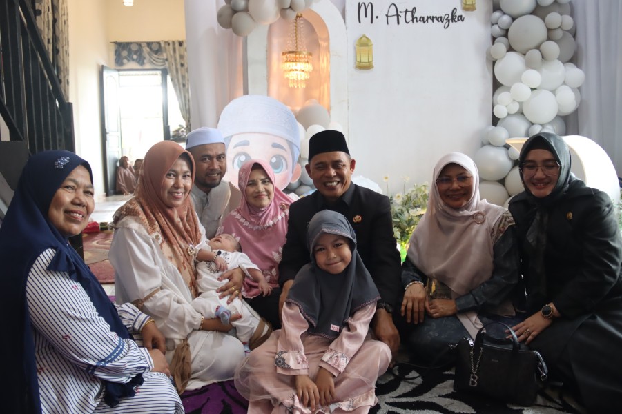 Acara turut diisi dengan doa bersama serta jamuan makan sebagai ungkapan rasa syukur atas kelahiran M. Atharrazka yang lahir pada Senin, 26 Juni 2025 lalu.