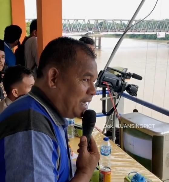 TELUK KUANTAN (KilasRiau.com) – Dalam setiap helatan pacu jalur di Tepian Narosa, Kuantan Singingi, ada satu suara yang selalu dinanti penonton. Suara itu milik Darwis, komentator kawakan yang dikenal dengan gaya bahasa khasnya. Dengan nada penuh semangat, ia mampu menghidupkan suasana lomba dan membuat detak jantung penonton ikut berpacu bersama jalur-jalur yang bertarung di Sungai Kuantan.