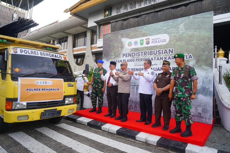 Gubernur Riau Abdul Wahid dalam sambutannya menegaskan, pendistribusian plang ini bukan sekadar kegiatan simbolis, tetapi bagian dari komitmen kolektif dalam menjaga bumi Lancang Kuning dari ancaman karhutla.