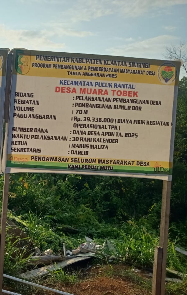Kepala Desa Muara Tobek, Hariantoni, saat dikonfirmasi kilasriau.com membenarkan adanya proyek MCK dan sumur bor tersebut. Ia menyebut pengerjaan sudah rampung sejak tahap kedua pada Agustus 2025.